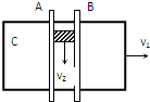 4、填空题 如图示,质量为m的物体放在水平放置的钢板C上,与钢板的动摩擦因数为μ,由于光滑导槽A、B的控制,物体只能沿水平导槽运动.现使钢板以速度v1向右运动,同时,用力F沿导槽的方向拉动物体使物体以速度v2沿导槽运动.则F的大小为______.