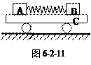 ![]() 2、选择题 如图6-2-11所示,A、B两物体质量之比mA:mB=3:2,原来静止在平板小车C上,A、B间有一根被压缩的弹簧,地面光滑,当弹簧突然释放后,则(?) 3、选择题 一颗手榴弹以v0=10m/s的水平速度在空中飞行。设它爆炸后炸裂为两块,小块质量为0.2 kg,沿原方向以250 m/s的速度飞去,那么,质量为0.4 kg的大块在爆炸后速度大小和方向是 4、计算题 在光滑的水平面上,质量为m1的小球A以速率v0向右运动。在小球A的前方O点有一质量为m2的小球B处于静止状态,如图所示。小球A与小球B发生正碰后小球A、B均向右运动。小球B被在Q点处的墙壁弹回后与小球A在P点相遇,PQ=1.5PO。假设小球间的碰撞及小球与墙壁之间的碰撞都是弹性的,求两小球质量之比m1/m2。 5、计算题 如下图所示,光滑水平面上有一质量为M的滑板,AB段是半径为r的1/4圆弧光滑轨道,BC段是长为L的水平粗糙面。开始滑板处于静止状态,一可视为质点的质量也为M的滑块从A处静止释放,滑块经过B点后恰好到达滑板右端C点与滑板相对静止(重力加速度为g)。 |