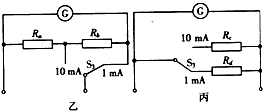 (2)将G改装成两量程电流表。现有两种备选电路,如图乙和图丙所示。图____为合理电路。