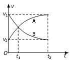 A.在0~t2时间内A物体的加速度不断减小,B物体的加速度不断增大