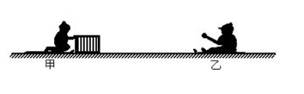 5、简答题 如图所示,甲、乙两小孩各坐一辆冰车在摩擦不计的冰面上相向运动,已知甲连同冰车的总质量M=30kg,乙连同冰车的总质量也是M=30kg,甲还推着一只质量m=15kg的箱子.甲、乙滑行的速度大小均为2m/s,为了避免相撞,在某时刻甲将箱子沿冰面推给乙,箱子滑到乙处时被乙接住.试求:①甲至少用多大的速度(相对于地面)将箱子推出,才可避免和乙相撞?②甲在推出时对箱子做了多少功?