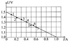 5、实验题 一同学用图1的实验电路图测一节干电池的电动势E和内阻r, 图2是他由实验测得的7组数据所画出的路端电压随电流强度变化的关系图,