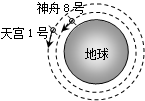 ![]() 参考答案:A、彗星做椭圆运动,线速度与半径在变化,根据v=rω知,角速度不是恒定不变的.故A错误. 本题解析: 本题难度:一般 3、选择题 2011年11月,“神舟8号”飞船与“天宫1号”目标飞行器在太空实现两次交会对接,开启了中国空间站的新纪元.在对接前的某段时间内,若“神舟8号”和“天宫1号”分别处在不同的圆形轨道上逆时针运行,如图所示.下列说法正确的是( ) |