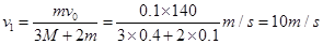 本题解析:设子弹入射过程,使A获得速度v1,B获得速度v2,子弹穿过A时速度为v3.子弹入射A过程,子弹A?B水平方向不受外力作用,动量守恒,则