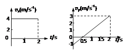 5、选择题 质量为1kg的物体在水平面内做曲线运动,已知其在互相垂直方向上的分速度图象分别如图所示。下列说法正确的是