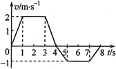 5、选择题 质点做直线运动的v-t图像如图所示,规定向东为正方向,则该质点在前8s内平均速度的大小和方向分别为( )