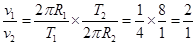 5、选择题 甲、乙两颗人造卫星绕地球作圆周运动,半径之比为R1:R2=1:4,则它们的运动周期之比和运动速率之比分别为