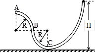 2、计算题 如图所示,高H=1.6m的赛台ABCDE固定于地面上,其上表面ABC光滑;质量M=1kg、高h=0.8m、长L的小车Q紧靠赛台右侧CD面(不粘连),放置于光滑水平地面上.质量m =1kg的小物块P从赛台顶点A由静止释放,经过B点的小曲面无损失机械能的滑上BC水平面,再滑上小车的左端.已知小物块与小车上表面的动摩擦因数μ=0.4,g取10m/s2. 3、计算题 (19分)如图所示,半径为R的四分之一圆弧形支架竖直放置,圆弧边缘C处有一小定滑轮,绳子不可伸长,不计一切摩擦,开始时,m1、m2两球静止,且m1>m2,试求: 4、计算题 (原创)(16分)某兴趣小组设计了一种实验装置,用来研究碰撞问题,其模型如图所示,光滑轨道中间部分水平,右侧为位于竖直平面内半径为R的半圆,在最低点与直轨道相切.5个大小相同、质量不等的小球并列静置于水平部分,球间有微小间隔,从左到右,球的编号依次为0、1、2、3、4,球的质量依次递减,每球质量与其相邻左球质量之比为k(k<1).将0号球向左拉至左侧轨道距水平高h处,然后由静止释放,使其与1号球碰撞,1号球再与2号球碰撞……所有碰撞皆为无机械能损失的正碰(不计空气阻力,小球可视为质点,重力加速度为g). 5、选择题 由光滑细管组成的轨道如图所示,其中AB段和BC段是半径为R的四分之一圆弧,轨道固定在竖直平面内。一质量为m的小球,从距离水平地面为H的管口D处静止释放,最后能够从A端水平抛出落到地面上。下列说法正确的是( ) |