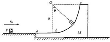 本题解析:(1)当P到达到c点时.P和M具有共同的水平速度 ,根据动量守恒定律有