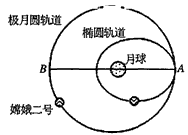 1、选择题 2010年10月26日21时27分,北京航天飞行控制中心对“嫦娥二号”卫星实施了降轨控制,卫星成功由轨道半径为a、周期为T1的极月圆轨道进入远月点距离为a、周期为T2的椭圆轨道,为在月球虹湾区拍摄图像做好准备,轨道如图所示。则“嫦娥二号”