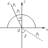 1、简答题 在测定玻璃的折射率实验中,有一个同学设计了这样的实验方案:如图所示,画有直角坐标系Oxy的白纸位于水平桌面上,在白纸上放置一半圆形玻璃砖,其底面的圆心在坐标原点O,直边与x轴重合,OA是画在纸上的直线,P1、P2为竖直地插在直线OA上的两枚大头针,P3?是竖直地插在纸上的第三枚大头针,α是直线OA与y轴正方向的夹角,β是直线OP3与y轴负方向的夹角,只要直线OA画得合适,且P3的位置取得正确,测得角α和β,便可求得玻璃的折射率.该同学在用上述方法测量玻璃的折射率时,在他画出的直线OA上竖直插上了P1、P2两枚大头针,但在y<0的区域内,不管眼睛放在何处,都无法使P3同时挡住P1、P2的像. (1)产生这种现象的原因是______; (2)若他已透过玻璃砖看到了P1、P2的像,确定P3位置的方法是______; (3)若他已正确地测得了α、β的值,则玻璃的折射率n=______; (4)有另一个同学不是将P1、P2两枚大头针插在直线OA上,而是让P1、P2的连线与y轴平行,他还能否测出玻璃砖的折射率?如果不能,请说出理由;如果能,请简述操作过程.