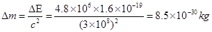 小题2:求上述反应中的质量亏损为多少(保留两位有效数字);