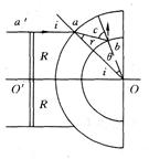 射入外球面,沿ab方向射向内球面,刚好发生全反射,则