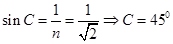 本题解析:当发生全反射时由: