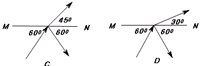 ,在这种介质与空气的交界面上MN上有光线入射,在如下图所示的光路中,哪个是正确的(MN上部分是空气,MN下部是介质)?(?)?
