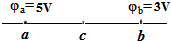 5、选择题  如图所示,a、b、c为电场中同一条水平电场线上的三点,c为a、b的中点,a、b两点的电势分别为φa=5v,φb=3V,则下列叙述正确的是(  )