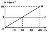本题解析::A的速度不变是匀速直线运动,B的速度均匀增加是匀加速直线运动,因为是在同一地点出发,图线所围成的面积与位移相等,所以两物体在40s时相遇,20s时只是速度相等,面积不相等