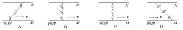 1、选择题 下列图中实线为河岸,河水的流动方向如图中v的箭头所示,虚线为小船从河岸M驶向对岸N的实际航线。则其中可能正确的是