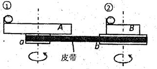 3、选择题 手表的时针和分针转动时( ) 4、简答题 图1是利用激光测转的原理示意图,图中圆盘可绕固定轴转动,盘边缘侧面上有一小段涂有很薄的反光材料.当盘转到某一位置时,接收器可以接收到反光涂层所反射的激光束,并将所收到的光信号转变成电信号,在示波器显示屏上显示出来(如图2所示). 5、选择题 如图,在验证向心力公式的实验中,质量相同的钢球①放在A盘的边缘,钢球②放在B盘的边缘,A、B两盘的半径之比为2:1。a、b分别是与A盘、B盘同轴的轮,a轮、b轮半径之比为1:2,当a、b 两轮在同一皮带带动下匀速转动时,皮带不打滑,且钢球①、②相对盘静止,则钢球①、②所需之比为 ( ) |