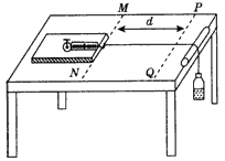 2、实验题 某同学设计了如图所示的装置来探究加速度与力的关系。弹簧秤固定在一合适的木板上,桌面的右边缘固定一支表面光滑的铅笔以代替定滑轮,细绳的两端分别与弹簧秤的挂钩和矿泉水瓶连接。在桌面上画出两条平行线MN、PQ,并测出间距d。开始时将木板置于MN处,现缓慢向瓶中加水,直到木板刚刚开始运动为止,记下弹簧秤的示数F0,以此表示滑动摩擦力的大小。再将木板放回原处并按住,继续向瓶中加水后,记下弹簧秤的示数F1,然后释放木板,并用秒表记下木板运动到PQ处的时间t。