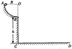 3、简答题  如图所示,轨道ABCD的AB段为一半径R=0.2m的光滑1/4圆形轨道,BC段为高为h=5m的竖直轨道,CD段为水平轨道.一质量为0.1kg的小球由A点从静止开始下滑到B点时速度的大小为2m/s,离开B点做平抛运动(g=10m/s2),求:
