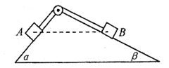 5、选择题 如图所示,A、B两物体(均可看作质点)质量分别为m1、m2,用跨过定滑轮的细绳相连,置于固定斜面体的两个斜面上的相同高度外,处于静止状态,两段细线分别与相应的斜面平行。左右两边斜面的倾角分别为