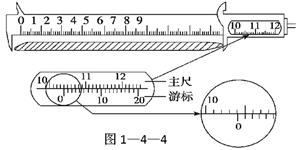 (1)用一主尺最小分度为1 mm,游标上有20个分度的卡尺测量一工件的长度,结果如图1-4-6所示.可以读出此工件的长度为________.