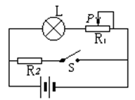 5、简答题 如图所示, 变阻器R1的最大电阻是4Ω,R2 = 6Ω, 电源内阻r =1Ω, 闭合S,使滑动头P滑到R1中点时, L恰能正常发光, 此时电源总功率为16W, 电源输出功率为12W. 求:(1) 灯电阻RL;
