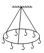 1、选择题 如图是一种晾衣架的结构示意图,其结构是在质量均匀的圆环上对称的安装挂钩,三根等长的细线固定在圆环的三等分点上,细线上端连在一起固定在水平横梁上.已知每根细线长均为20cm,圆环半径为12cm,晾衣架的总重力为G,(不计细线重力),则每根细线所受拉力大小是( )
