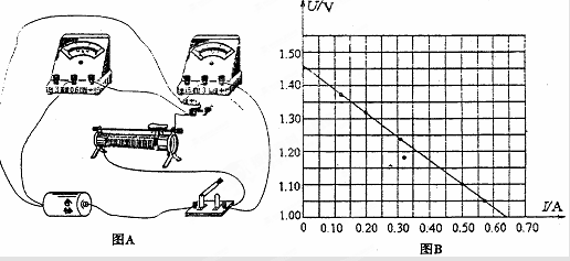 1、实验题 测量电源电动势和内电阻的器材如图A所示,请用实线表示导线,将图A中器材连成实验用电路,实验时经测量得出的数据如下表,请在下图B的方格纸上画出U—I图线。利用图线可求出电源电动势和内电阻分别为?、?。