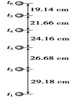 4、实验题  某同学利用竖直上抛小球的频闪照片验证机械能守恒定律.频闪仪每隔0.05 s闪光一次,图中所标数据为实际距离,该同学通过计算得到不同时刻的速度如下表(当地重力加速度取9.8 m/s2,小球质量m=0.2 kg,结果保留三位有效数字):