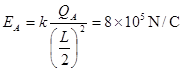 (2)AB中点的场强是三个电场叠加的结果,其中:
