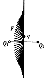 1、选择题 Q1、Q2为两个带电质点,带正电的检验电荷q沿中垂线上移动时,q在各点所受Q1、Q2作用力的合力大小和方向如图细线所示(力的方向都是向左侧),由此可以判断