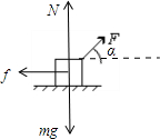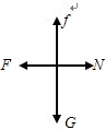 4、选择题  如图所示,质量为1kg的物块靠在竖直墙面上,物块与墙面间的动摩擦因数为μ=0.3,垂直于墙壁作用在物块表面的推力F=50N,现物块处于静止状态.则物块所受摩擦力的大小为(  )