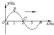 5、选择题 一列沿x轴正方向传播的简谐横波,在t=0时的波形如图所示,质点A和C处于平衡位置,质点B处于波峰位置。已知该波周期为4s,则
