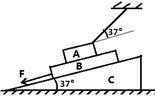 ![]() 2、选择题 如下图所示,当人向右跨了一步后,人与重物重新保持静止,下列说法正确的是(?) 3、选择题 在广场游玩时,一小孩将一充有氢气的气球用细绳系于一个小石块上,并将小石块置于水平地面上,如图所示.若水平的风速逐渐增大(设空气密度不变),则下列说法中正确的是(? ) 4、填空题 在车厢的天花板上,用不计质量的细绳悬挂一个质量是m的小球.当车厢沿平直轨道做匀速运动时,小球与车厢保持相对静止,细绳对小球的拉力大小为______.当车厢以加速度a沿平直轨道做匀加速运动时,小球与车厢保持相对静止,细绳对小球的拉力大小为______.(已知重力加速度为g) 5、计算题 如图所示,木块A的质量为mA=3kg、木板B的质量为mB=1.5kg。木板B两面平行,放在倾角为37°的三角体C上。木块A被一根固定在天花板上的轻绳拉住,绳拉紧时与斜面的夹角也是37°。已知A与B,B与C之间的动摩擦因数均为 |