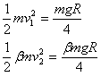 4、计算题 如图,半径为R的光滑圆形轨道固定在竖直面内。小球A、B质量分别为m、βm(β为待定系数)。A球从左边与圆心等高处由静止开始沿轨道下滑,与静止于轨道最低点的B球相撞,碰撞后A、B球能达到的最大高度均为,碰撞中无机械能损失。重力加速度为g。试求: