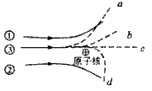 5、其他 卢瑟福通过___________实验,发现了原子中间有一个很小的核,并由此提出了原子的核式结构模型。下面平面示意图中的四条线表示α粒子运动的可能轨迹,在图中完成中间两条α粒子的运动轨迹。