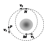 3、选择题 我国发射神舟号飞船时,先将飞船发送到一个椭圆轨道上,其近地点M距地面200km,远地点N距地面340km。进入该轨道正常运行时,其周期为T1,通过M、N点时的速率分别是V1,V2。当某次飞船通过N点时,地面指挥部发出指令,点燃飞船上的发动机,使飞船在短时间内加速后进入离地面340km的圆形轨道,开始绕地球做匀速圆周运动,周期为T2,这时飞船的速率为V3。比较飞船在M、N、P三点正常运行时(不包括点火加速阶段)的速率大小和加速度大小,及在两个轨道上运行的周期,下列结论正确的是