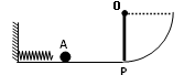 4、实验题 如图所示,光滑水平轨道与在竖直平面内的光滑圆弧轨道相切,O点为圆弧轨道的圆心,圆弧轨道的半径为1.0m,弹簧的一端固定在水平轨道的左端,OP是可绕O点转动的轻杆,其长度与轨道半径相同,且摆到某处就能停在该处。一小钢球A停放在光滑水平轨道上的某点处,小球的半径远小于圆弧轨道的半径。现在选用上述器材测定弹簧被压缩时的弹性势能。