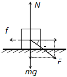 4、简答题 如图,放在水平面上质量为G=10N的物体受到一个斜向下方的10N的推力F作用,这个力与水平方向成θ=37°角,在此恒力的作用下,物体匀速滑动,求物体与水平面间的滑动摩擦因数.(g=10m/s2)