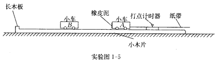 ![]() 参考答案:A、以BC为研究对象,受到AB杆的作用力和墙的作用力,二力平衡,必定大小相等,方向相反,作用在同一直线上,墙的作用沿CB连线向上,则AB杆对BC杆的作用力方向沿BC连线斜向下.故A正确. 本题解析: 本题难度:简单 4、选择题 如图所示,弹簧测力计和细绳重力不计,不计一切摩擦,物体重G=5N,当装置稳定时弹簧测力计A和B的读数分别为 参考答案:C 本题解析: 本题难度:简单 5、填空题 某同学设计了一个用打点计时器验证动量守恒定律的实验:在小车A的前端粘有橡皮泥,推动小车A使之做匀速运动.然后与原来静止在前方的小车B相碰并粘合成一体,继续做匀速运动,他设计的具体装置如实验图1-5所示.在小车A后连着纸带,电磁打点计时器电源频率为50Hz,长木板下垫着小木片用以平衡摩擦力. 参考答案:(1)BC? DE? (2)0.42? 0.417 本题解析:解答:解:(1)推动小车由静止开始运动,故小车有个加速过程,在碰撞前做匀速直线运动,即在相同的时间内通过的位移相同,故BC段为匀速运动的阶段,故选BC计算碰前的速度; 本题难度:一般 Wealth is the test of a man's character. 财富是对一个人品格的试金石. |