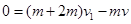 m甲v甲+m乙v乙=(m甲+m乙)v,即:500×3+100×(-6)=(500+100)v,