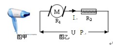 参考答案:A、对于电源,当电源的内外电阻相等时,电源的输出功率最大;在滑动变阻器的滑臂P由左端a向右滑动的过程中,变阻器接入电路的电阻变小.因外电路电阻始终大于电源内电阻,故电源的输出功率不断变大,故A错误; 本题解析: 本题难度:一般 3、选择题  图甲是某理发店使用的直流吹风机,图乙是吹风机的内部电路图。电动机M (其线圈电阻为R1)与电热丝R2串联,直流电源接通后,吹风机正常工作。若吹风机两端的电压为U、电流为I、消耗的功率为P,则有(?) 参考答案:A 本题解析:电动机是非纯电阻,它将一部分电能转化为电热,一部分电能转化为机械能, 本题难度:一般 4、选择题  如图所示,M为理想变压器,各电表均可视为理想电表.电路输入端a、b接正弦交流电压,则在滑动变阻器的滑片P向下滑动的过程中(  ) 参考答案:D 本题解析:当滑动变阻器的滑片向下滑动时,滑动变阻器的电阻减小,导致电路的总电阻减小,所以电路中的总电流增大, 本题难度:一般 5、选择题  如图所示的电路中,电压表都看做理想电表,电源内阻为r。闭合电键S,当把滑动变阻器 参考答案:D 本题解析:AB、当滑动变阻器 本题难度:一般 |