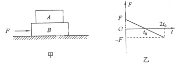 4、选择题 A B两物体叠放在一起,放在光滑水平面上,如图甲,它们从静止开始受到一变力F的作用,该力与时间关系如图乙所示,A、B始终相对静止,则