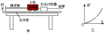 (2)若根据多次测量数据画出的W-v图象如图乙所示,根据图线形状可知,关于橡皮筋做功W与小车速度v的关系作出以下的猜想,其中肯定不正确的是______