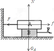 4、简答题 如图所示,物体A重40N,物体B重20N,A与B间动摩擦因数为μ1=0.1.物体A用绳系住,当水平力F=28N时,才能将B匀速拉出.求①绳对A的拉力大小②B与地面间的动摩擦因数μ2是多大?
