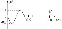 4、填空题  一列简谐横波以1m/s的速度沿x轴正方向传播,t=0时刻波形如图所示。在x=1.0m处有一质点M,该波传播到M点需要的时间t=s,波动周期T= s;若在x=2.0m处的波源产生了频率等于2.0Hz且沿x轴负方向传播的简谐横波,则这两列波相遇时(选填“能”或“不能”)发生干涉,其原因是。