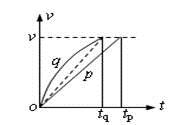 可以利用v-t图象(这里的v是速率,曲线下的面积表示路程s)定性地进行比较。在同一个v-t图象中做出p、q的速率图线,显然开始时q的加速度较大,斜率较大;由于机械能守恒,末速率相同,即曲线末端在同一水平图线上。为使路程相同(曲线和横轴所围的面积相同),显然q用的时间较少。此题用图象法就非常直观、简洁,若采用公式法就非常麻烦了。