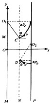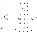 ![]() 参考答案:D 本题解析: 本题难度:简单 3、选择题 如图所示,一根水平光滑的绝缘直槽轨连接一个竖直放置的半径为R=0.50m的绝缘光滑槽轨。槽轨处在垂直纸面向外的匀强磁场中,磁感应强度B=0.50T。有一个质量m=0.10g,带电量为q=+1.6×10-3C的小球在水平轨道上向右运动。若小球恰好能通过最高点,则下列说法正确的是 参考答案:ABD 本题解析: 本题难度:一般 4、计算题 如图所示,在直角坐标系XOY平面内,在Y>0处有与X轴成60°角的匀强电场,场强大小E=103v/m,在Y<0处有垂直于纸面向外的匀强磁场,磁感应强度B= 参考答案:(1) 本题解析:(1)释放A微粒后在电场中沿电场方向做匀加速直线运动 本题难度:一般 5、简答题 如图所示的坐标系xoy中,M、P为与x轴垂直放置的足够大平板,其中M板位于x=0处.P为感光板位于x=2d处,N为位于x=d处的与P板平行的界面.位于坐标原点处的粒子源,可以向xov平面内y轴右侧的各个方向发射质量为m,电荷量为q、速率均相同的带正电粒子,在d≤x≤2d的区域内存在垂直坐标平面向里、磁感应强度为B的匀强磁场.粒子源沿x轴方向射出的粒子恰好打不到P上,不计粒子重力